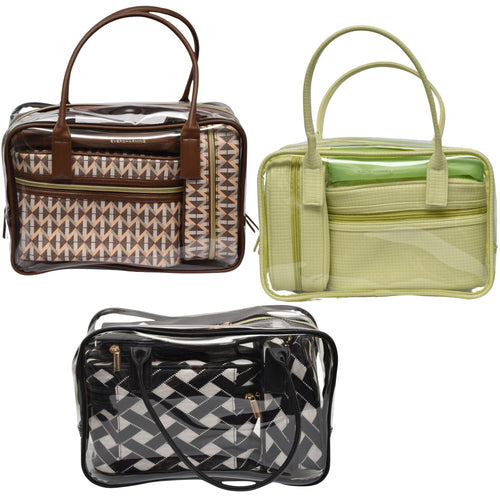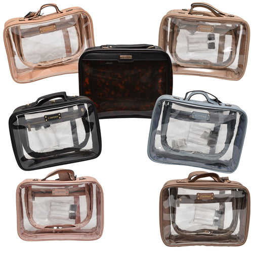 • 3 Piece Clear Train Case with floral and sparkle make up bags