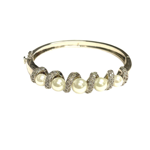 Pearl & Crystal Swirl Bangle Bracelet