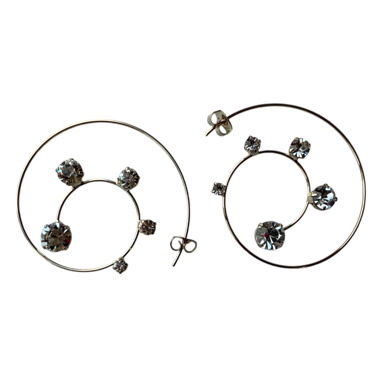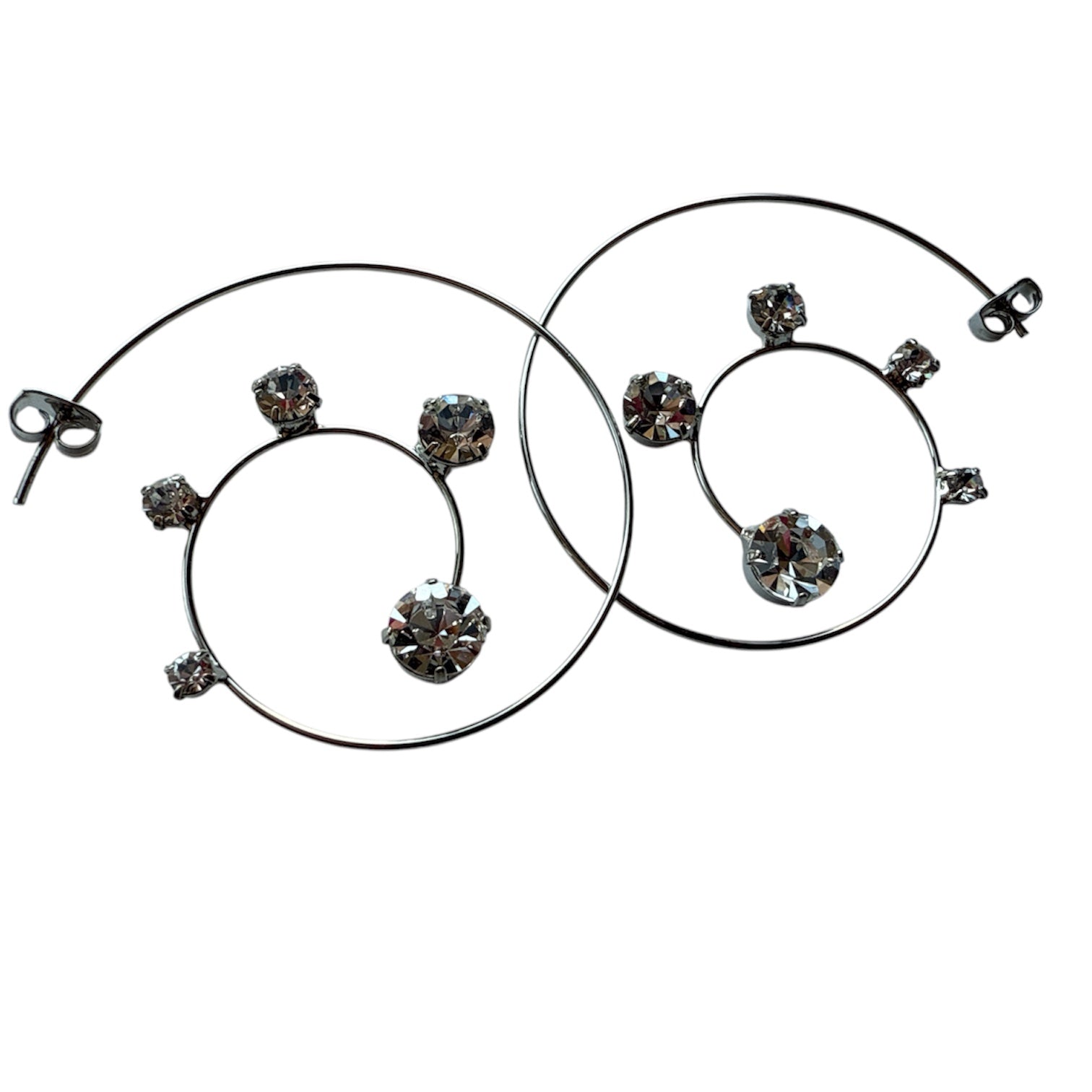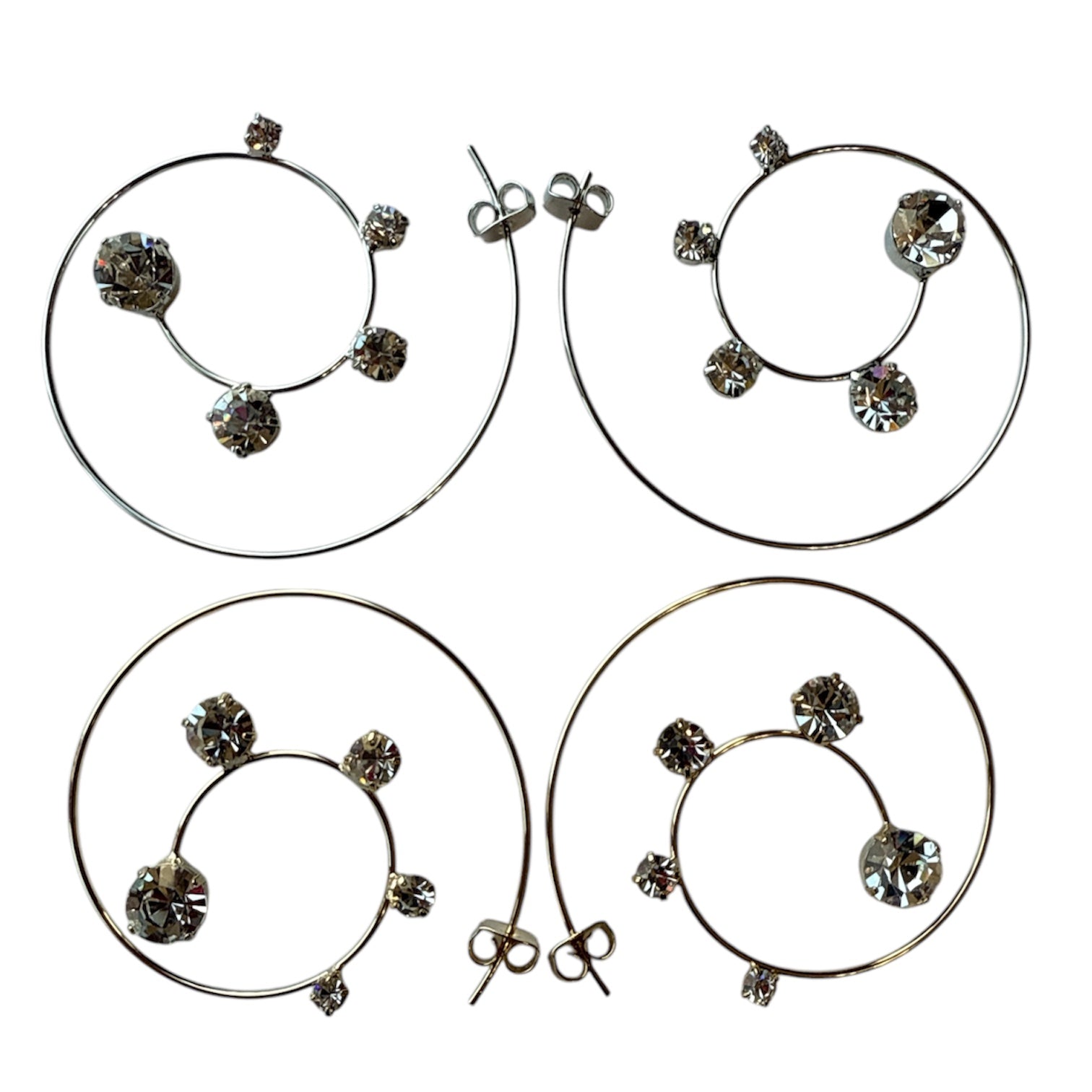 Elevate your style with the Spiraling Glamour CZ Open Hoop Earrings a truly unique design that combines modern elegance with a hint of drama. These large, spiral-shaped open hoop earrings feature five stunning cubic zirconia (CZ) stones, gradually decreasing in size as they spiral along the wire. The intricate spiral design offers a dynamic, flowing silhouette, while the CZ stones add just the right amount of sparkle
