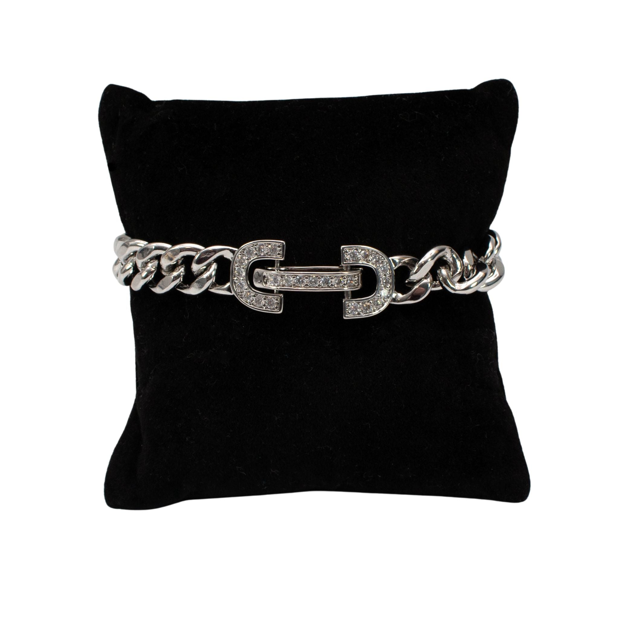 This bracelet is an eye catcher! This gorgeous bracelet is simple and elegant. Perfect for dressing up or with a t-shirt and jeans. The clasp is incredible with all of the cubic zirconia stones. Wear it with the beautiful matching necklace to complete the look. Incredible quality and design completes this Lux Couture Jewellery Collection bracelet.