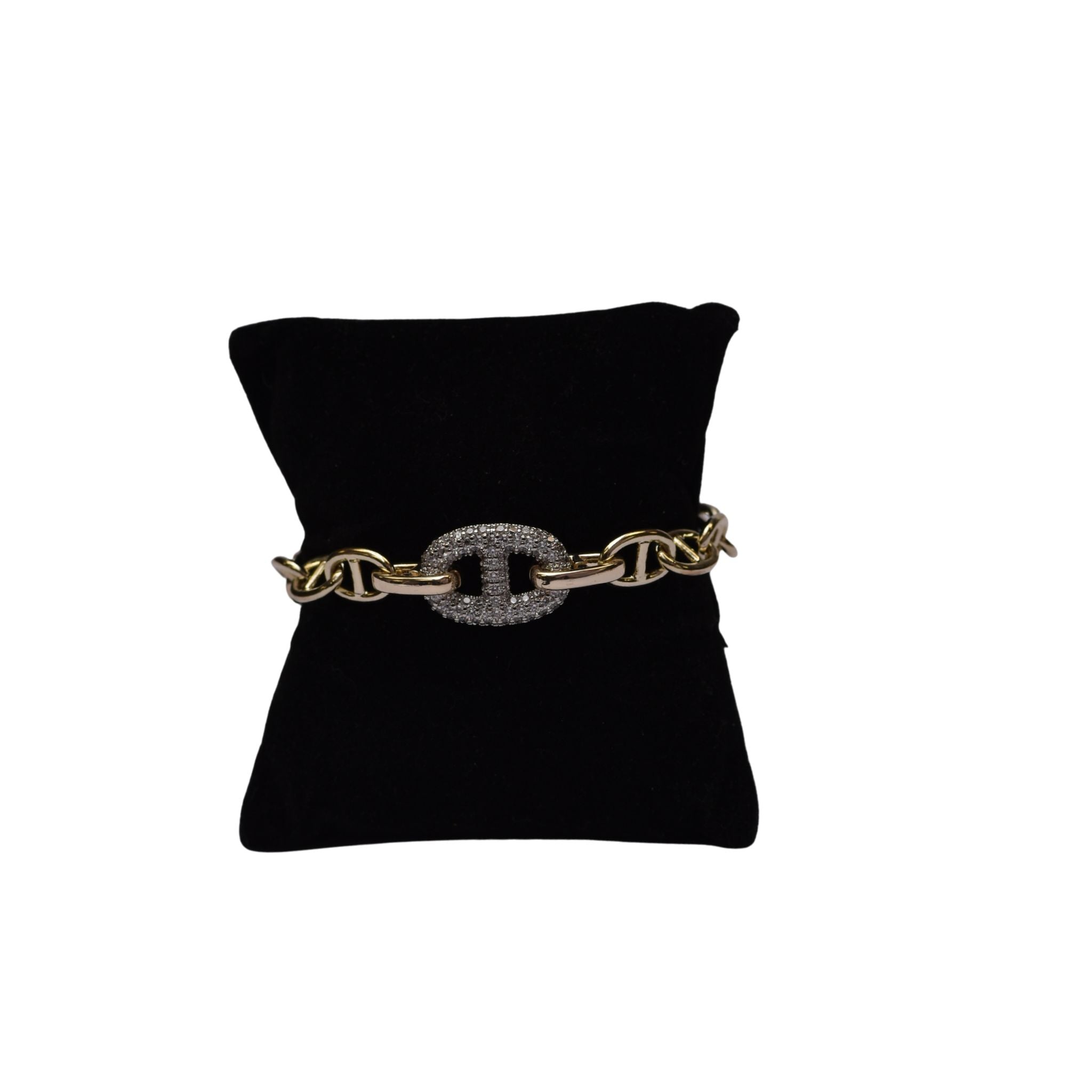 Part of our Lux Collection, this stunning bracelet brings high-end style to everyday wear. Featuring a classic gold anchor-link design with a sparkling center CZ, it delivers luxe shine without the designer price tag. The magnetic clasp offers effortless, secure wear, and the nickel- and lead-free finish ensures comfort for sensitive skin. Measuring 7.5 inches, it’s the perfect blend of elegance, simplicity, and modern glamour.
