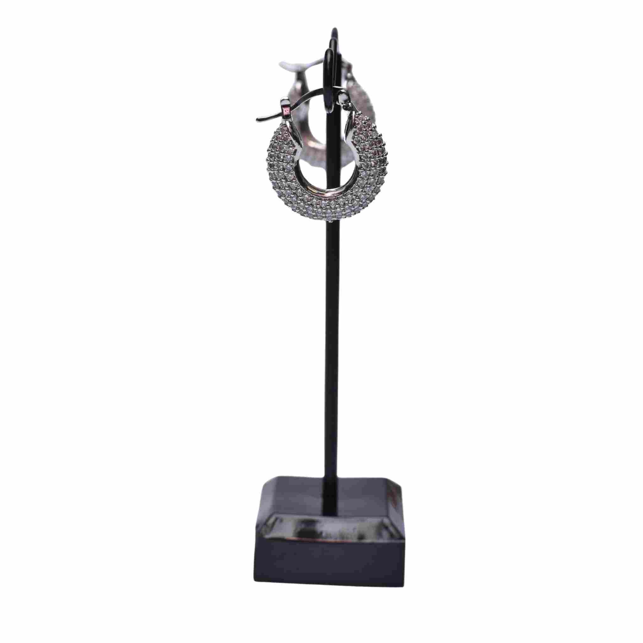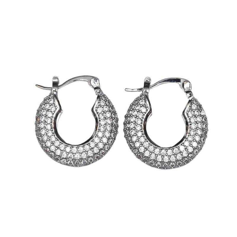 Sparkle with confidence in these Pixel Bloom Cubic Zirconia Huggie Hoops! Adorned with glittering zirconia stones, these beauties feature a white gold dip over a silver base for that luxe look. Safe for sensitive ears—nickel and lead free—they're crafted with a secure huggie closure that keeps your earring backs exactly where they belong. No more frantic searches for lost backs! Slip them on, enjoy the dazzle, and let them stay put all day long.