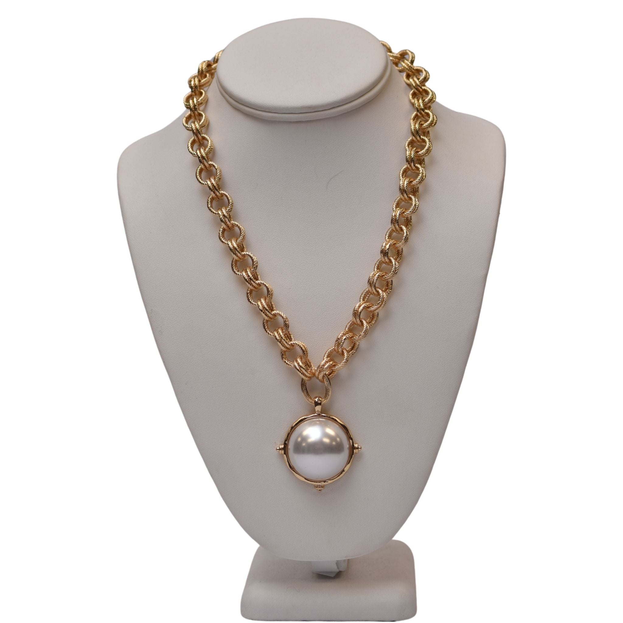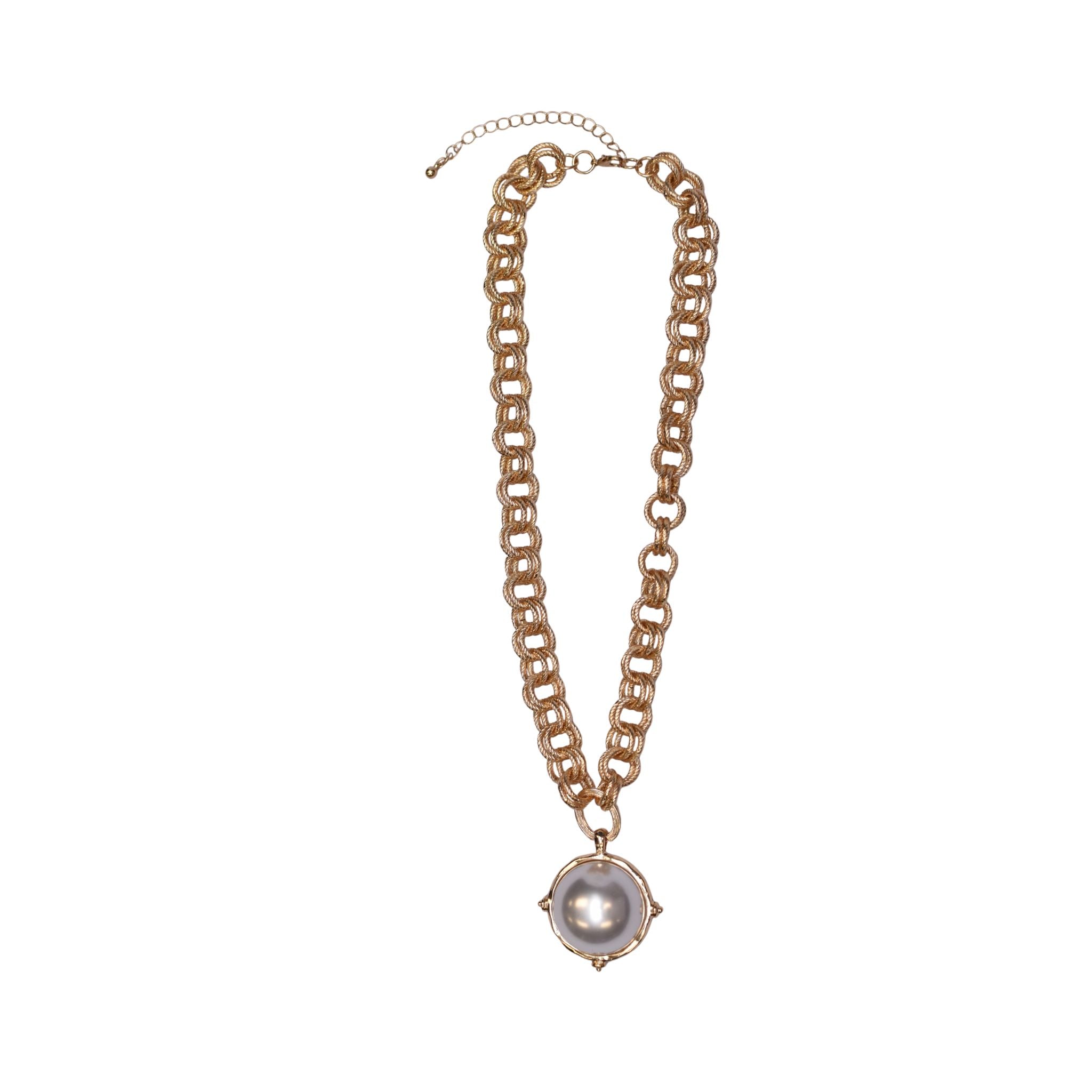 Elevate your style with the Focus on the Pearl Necklace, a stunning statement piece designed for effortless sophistication. Featuring a double-link circle chain, this elegant necklace draws the eye to a large, luminous pearl at its center. Perfectly balanced and designed for versatility, it measures 18 inches with a 3-inch extender, allowing for the ideal fit for any neckline. A timeless accessory that adds a touch of classic glamour to any outfit.
